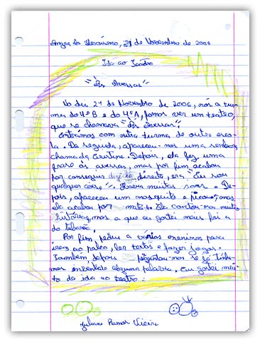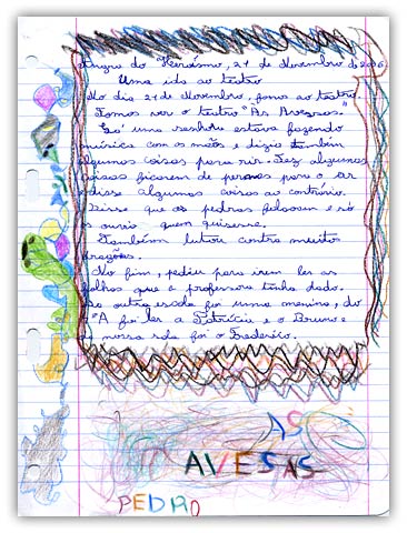 Depois de ver o vosso espectáculo fiz este texto com a minha mãe para levar para a escola e ofereço como prenda do bom espectáculo que nos ofereceram.