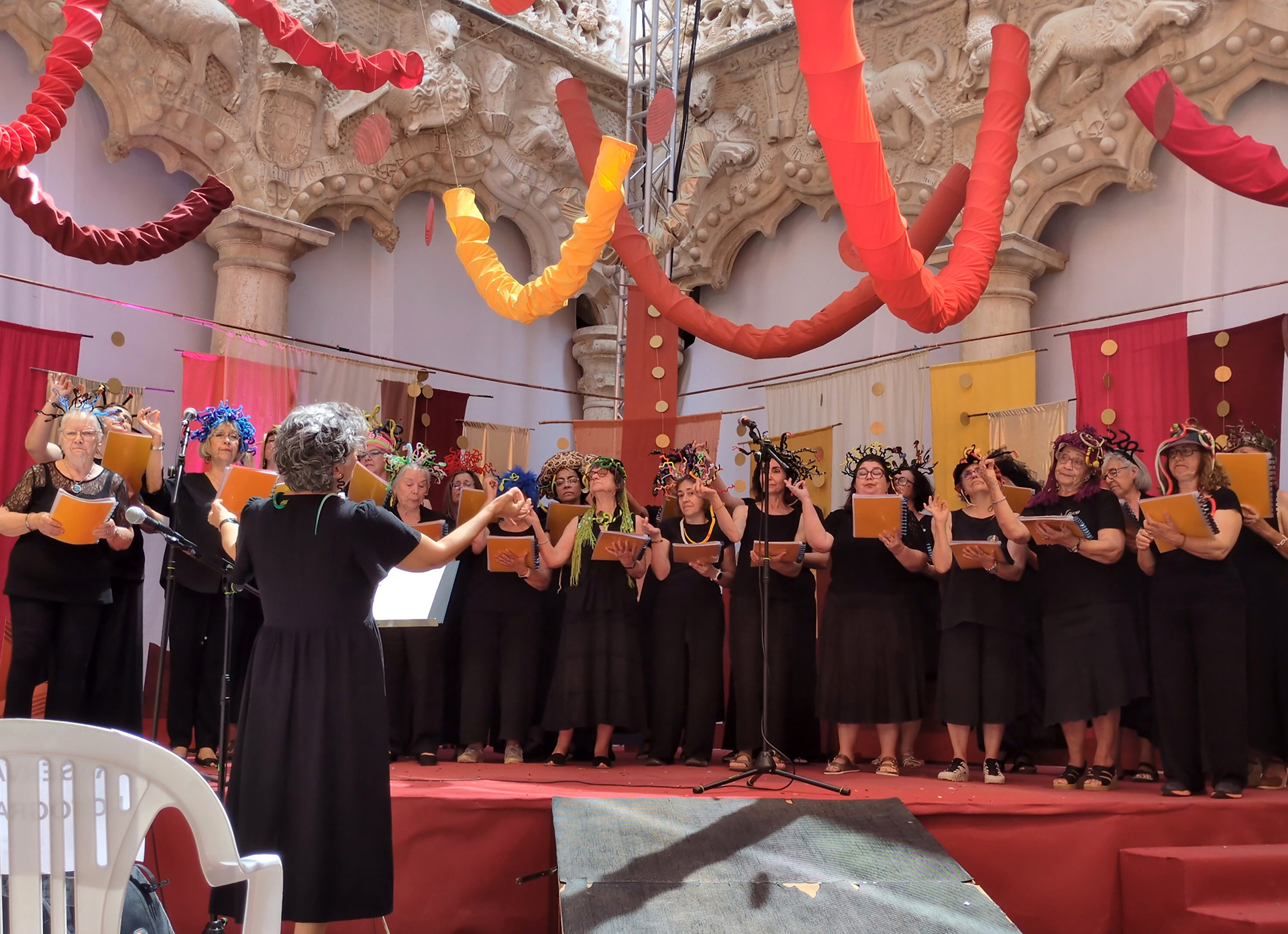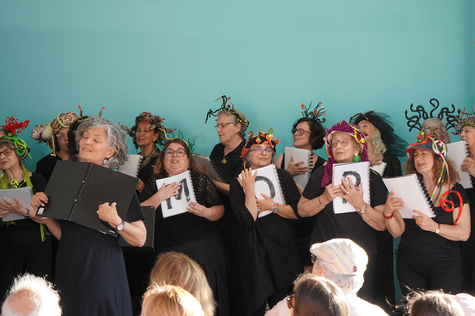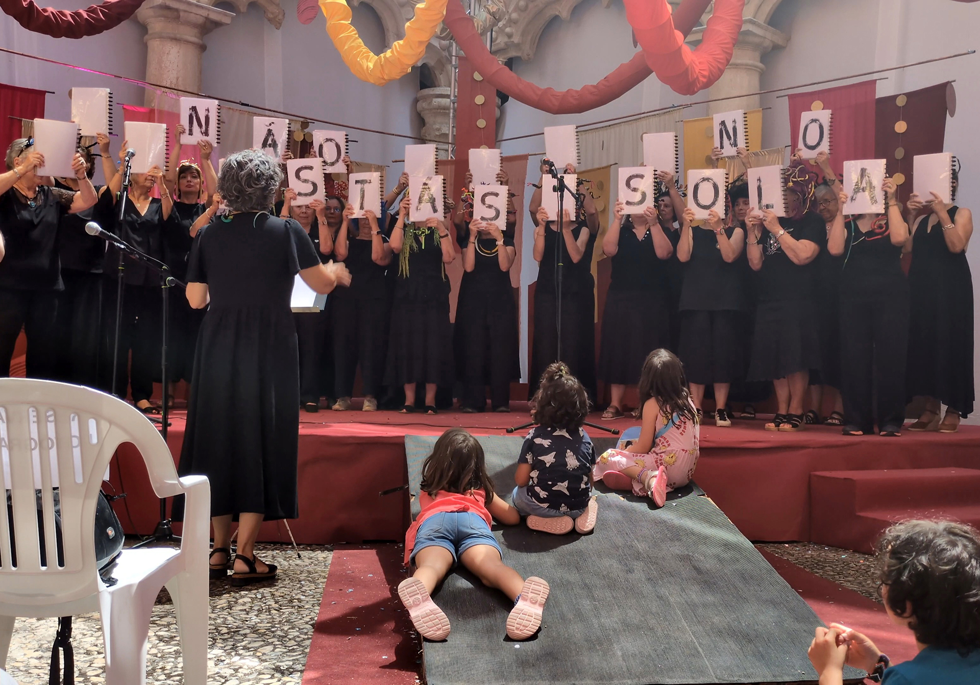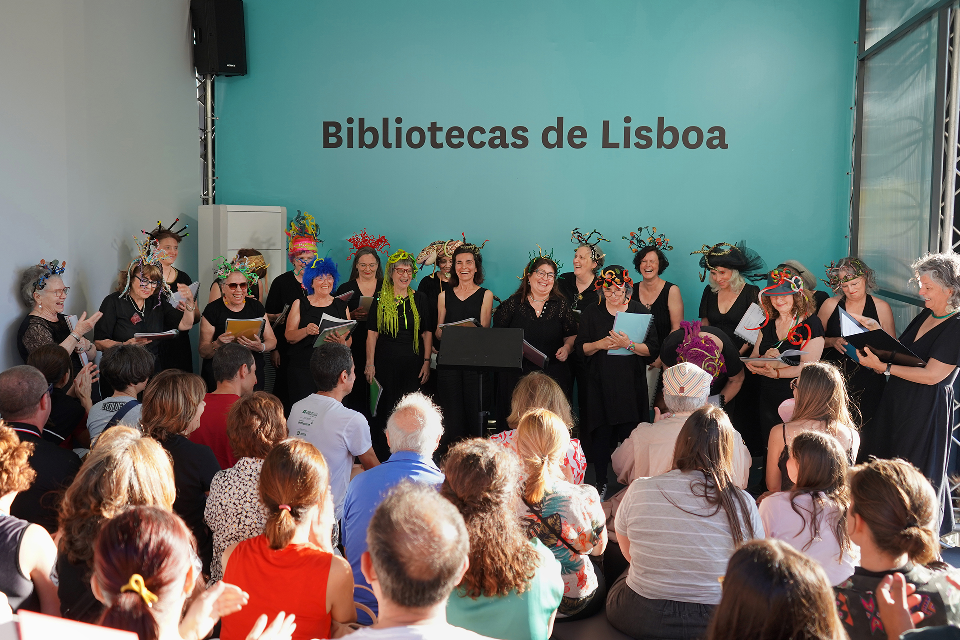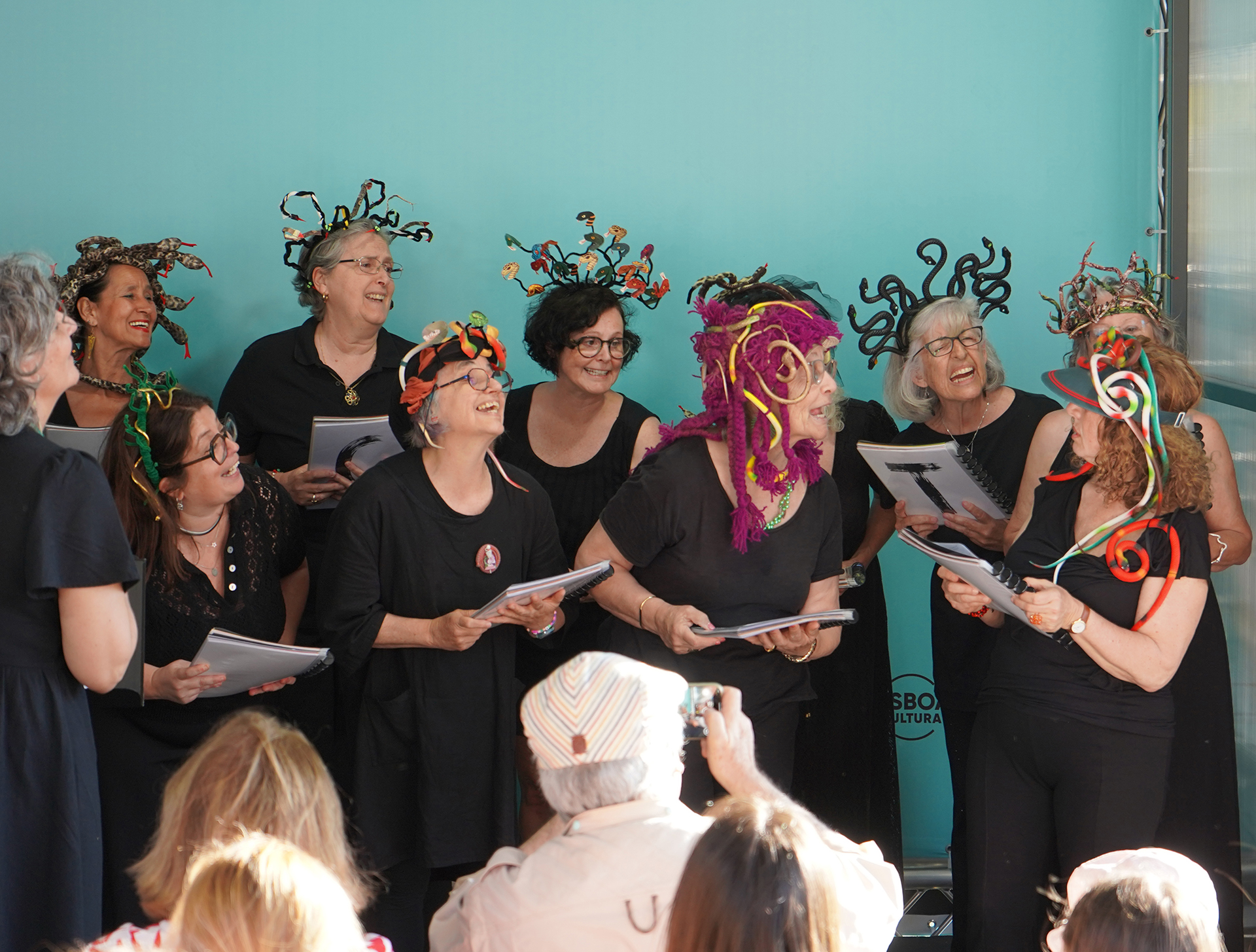 A voz das mulheres. Um coro feito de mulheres leitoras ficaria só por si, por inerência, imediatamente dentro do tema do festival, mas fomos buscar também as palavras que nos contam, que falam da nossa vida, do que experimentamos e sentimos, do que amamos e vivemos. De preferência com um sorriso. As instruções que vão passando de mães para filhas e que são tão difíceis de mudar. Queremos lutar por mudar algumas delas. Somos lutadoras mas também nos rimos muito, especialmente de nós, batalhamos mas temos braços e coração para abraçar e barrigadas de riso para dar e vender.
